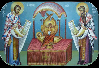 Και αφού ετελείωσε την προσκομιδή ο ιερέας και έβαλε τα άγια καλύμματα, πολύ φως περισκέπασε τα θεία δώρα, διότι τα αισθητά καλύμματα φανερώνουν το νοητό φως, το οποίο σκεπάζει τα άγια. Άμα δε ήλθε ο καιρός της μεγάλης Εισόδου και βγήκε ο ιερέας με τα άγια, άρχισε το φως μπροστά και εσκέπασε το λαό.